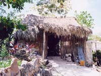 的な熱帯雨林です。 ジャングルを抜けるとValladolidのダウンタウンに入りました。このダウンタウンは車の中からみた途中の町の素朴な町並とは違って観光客 で賑わっていました。ここは、かつてMaya族に捧げられた町らしいです。 私達を乗せたバスは、Valladolidのダウンタウンを過ぎた後、すぐ近くにあるお土産屋さんのようなところで休憩を取りました。 この近の町は、Cancunのような観光地とは違い、建物も住んでいる人々の生活も素朴な感じがしました。 車窓からは、子供達がアルマジロをペットのように抱きかかえている姿を何度か目にしました。アルマジロと言うと、どうしてもテキサスの イメージが強く、こんな所で生きたアルマジロを見るとは思ってもみませんでした。 その後バスは、AM11:30頃ツアーの目的地Chichen Itzaへ到着しました。 バスを降りた後、添乗員の後に続いてここで一番有名な"El Castillo"というククルカン・ピラミッドの目前にまで行きました。 添乗員は、その場所で1時間以上も遺跡について語り続けていました。 あれ?自由行動だって言っていたのに・・・? そうです。この添乗員さん、遺跡の解説もやるのです。思い出してみると、バスを降りるときに「ここにもツアーがあり、お金を払えば英語や スペイン語、日本語の解説者が遺跡を案内してくれます。が、私の解説でよければチップだけで解説します。」なんて言っていました。 そうとは気づかず、すっかりこの解説を聞いてしまった私達は、次の場所に移動するときにハタとこのことに気付き、それからは自由行動をす ることにしました。(笑) |