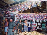 私達は、ホテルの向かい側にあるFlamingo Plazaからダウンタウンとホテルゾーンを周遊するバスに乗りKukulcan Plazaへ行きました。 バスの料金はどこで降りても、一人N$5.00(US$0.50)です。 私達は、Cancunに来て初めてのバス移動でした。 バスは、スピードオーバーなんて当たり前のように、ビュンビュン走り、バス停ごとに止まることはありません。 降りる時は、乗車の際に運転手に行き先を告げるか、目的地の手前でドアに向かって降りる意思を運転手に知らせなければなりません。 私達が降りた先は、人々の乗り降りの多いKukulcan Plazaだったので、乗り過ごしてしまうことはなかったのですが、日本人の感覚では考えられない ものでした。 Kukulcan Plazaは、Flamingo Plazaより大きなショッピングセンターです。 私達は、この中にある「OK Maguey」というメキシカンレストランで食事をすることにしました。 ここで飲んだお土産にもなる細長いグラスに入った、ココナッツとパイナップルジュースがミックスされたフローズンマルガリータは、トロピカルジ ュースみたいでとても美味しかったです。 ここでは、ノンアルコールのフローズンマルガリータもあるので、いつもパパとママとは別のものを飲んでいて不満げだった娘も大満足でした。 メキシカン料理は、「さすがは本場メキシコ! どっかのTEX-MEXとは違いますねぇ」って感じでとてもGoodでした。 ファヒータの味も良く、驚いたのがビーンペーストが美味しかったことです。メキシコからTEXASにそのままの味で伝わって欲しかったなぁ… この店でも、メキシカンハットをかぶって記念撮影をしてくれました。 ここの写真は、デジカメで撮影してパソコンで合成したものなのです。 だから画像もそれなりで、「LOS RANCHEROS」の方が写真は良かったです。 何事も旅の思い出と言えばそれまでですが… |
